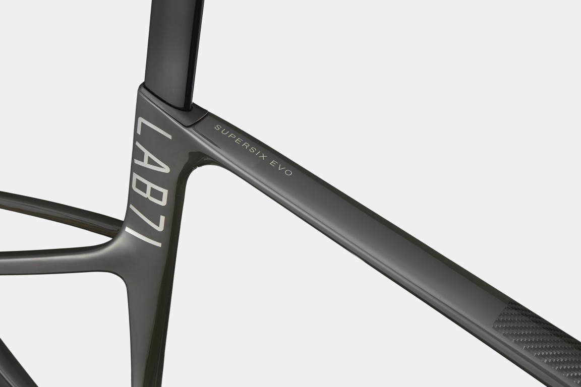 LAB71 SuperSix EVO, Gen 5, Ultralight Series 0 Carbon, 12×142 thru-axle, BSA 68mm threaded BB, flat mount disc, integrated seat binder, UDH · Horquilla LAB71 SuperSix EVO, Gen 5, Ultralight Series 0 Carbon, integrated crown race, 12x100mm thru-axle, flat mount disc, internal routing, 1-1/8″ to 1-1/4″ Delta steerer, 55mm offset (44-54cm), 45mm offset (56-61cm) · Dirección Integrated, 1-1/8″ – 1-1/4″