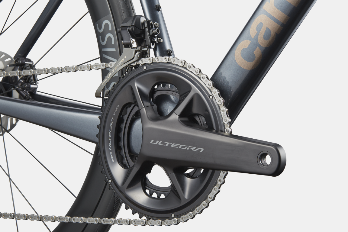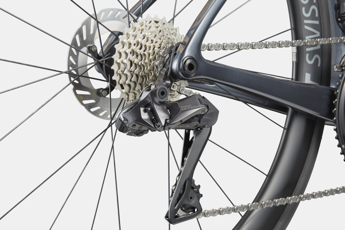 · Cuadro SuperSix EVO Carbon, Gen 5, integrated cable routing, 12×142 thru-axle, BSA 68mm threaded BB, flat mount disc, integrated seat binder, UDH · Horquilla SuperSix EVO Carbon, Gen 5, integrated crown race, 12x100mm thru-axle, flat mount disc, internal routing, 1-1/8″ to 1-1/4″ Delta steerer, 55mm offset (44-54cm), 45mm offset (56-61cm) · Dirección Integrated, 1-1/8″ – 1-1/4″ TRANSMISIÓN · Cambio Shimano Ultegra Di2 · Mandos de cambio Shimano Ultegra Di2 R8170, wireless, 2×12-speed · Cadena Shimano Ultegra, 12-speed · Bielas Shimano Ultegra R8100, 52/36: 165mm (44-50cm), 170mm (52-56cm), 172.5 (58-61cm) · Casette Shimano Ultegra R8100, 11-30, 12-speed · Bottom Bracket Shimano BB-RS500, BSA 68 FRENOS · Frenos Shimano Ultegra R8170 hydraulic disc, 160/140mm CL800 rotors · Manetas de freno Shimano Ultegra Di2 R8170 hydraulic disc |